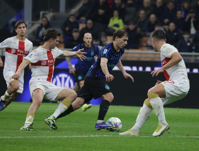 下半場后,國米的攻勢明顯弱了不少,更多選擇控制比賽節(jié)奏,反而熱那亞利用體能優(yōu)勢頻繁向國米球門發(fā)起攻擊。雖然沒有造成太大的威脅,但對防線的消耗卻不小。所以為了盡快擴(kuò)大比分鎖定勝局,齊沃在第60分鐘同時(shí)換上皮奧和恰爾汗奧盧,就是為了能夠增強(qiáng)進(jìn)攻端威脅。第67分鐘,則是用比塞克換下德弗里,將阿坎吉移到中路,以確保后防質(zhì)量。